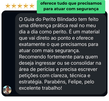 É por isso que o Guia do perito blindado vai te ajudar a criar petições impecáveis, sem atrasos ou bloqueios, em poucos minutos!